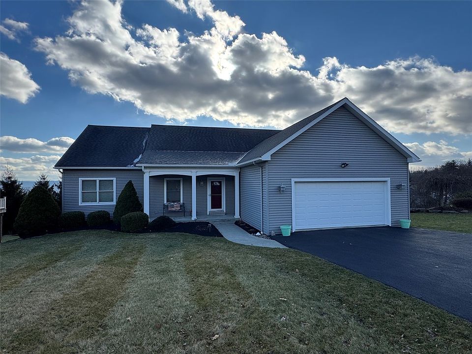How about a new home to start the New Year? Unique Custom Built Ranch with Fabulous Views! This spacious ranch has all you need! Walk in to a large Foyer -Open floor plan - kitchen w/ corian counters and SS appliances, double wall oven , Butler's pantry, Dining Area, Large LR w/ gas F/P and a wall of windows and deck to take in the amazing views! Watch the fireworks from the comfort of your home! 1st floor Laundry, Huge Master BR w/ 2 closets (one is walk in), tray ceiling and master bath w/ gorgeous tiled shower. 2 more spacious bedrooms and full bath on 1st floor. Head downstairs to just as much living space! HUGE walk-out Family room, Full bath, storage galore and another area which could be 4th bedroom, home office or work out room. So, if you are looking for a gorgeous true ranch, look no more!! Call your agent today and schedule your showing.