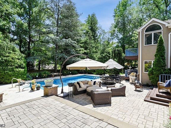 Be prepared to fall in love with this mint condition 5 bedroom, 4 full bath home ideally situated on .84 acres at the end of a cul de sac, directly across from Shackamaxon Golf Course & near Tamaques Park. Designed for both comfortable everyday living & exceptional entertaining, the home features a spacious living room w/ a beamed ceiling, formal dining room, & a gourmet eat-in kitchen w/ center island & top of the line stainless steel appliances. The kitchen flows seamlessly into the family room w/ a gas fireplace & offers effortless access through new thermal glass doors to the expansive outdoor living space. The 1st floor also includes a beautifully updated full bath w/ shower, laundry area, & mudroom access leading to the pool area. The professionally landscaped backyard is a true private retreat, featuring an expansive stone patio, multiple decks, tranquil waterfall nestled within a bamboo sanctuary, & a beautiful pool w/ a new heater & filter - creating a serene resort-like setting. Upstairs, the luxurious primary suite boasts a vaulted ceiling, custom closet, & double doors opening to a private balcony. The newly renovated spa-like bath features a cast-iron soaking tub, stall shower, & radiant heated floors. 3 additional bedrooms are complemented by 2 more full baths, including 1 ensuite. The beautifully finished lower level offers a wet bar & cedar sauna-perfect for relaxation & entertaining. Updates include a new gas hot water heater & Generac whole house generator.