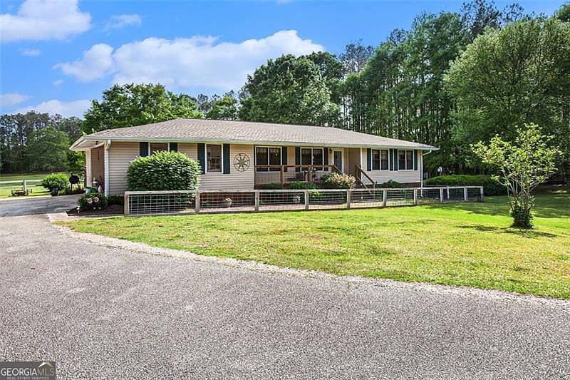 Come and take a look at this renovated ranch. From the time you turn down the driveway, you can see the open land this home offers on just over 5 acres! The rocking chair front porch welcomes you home, then as you step inside you will see a formal living and dining room. The family room is oversized and opens to the kitchen and home office space. Off the kitchen, you will find a large sunroom that opens to the outdoor living space. The kitchen has been updated with granite counters and stainless appliances. The primary bedroom includes an ensuite bath with a clawfoot tub. The hall bath has been updated with dual vanities and a large tile shower. Out back you will find fenced-in pasture space, an outbuilding, and the above-ground pool with a sun deck.