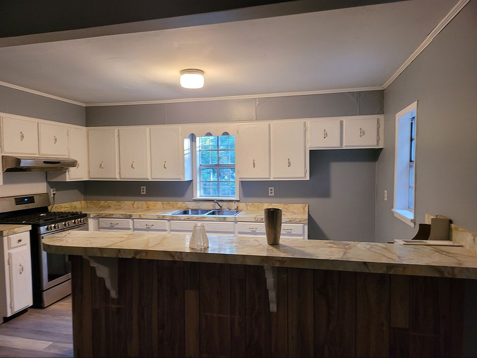 Fresh new paint and stove and refrigerator. Washer and dryer connection and new roof. Nice lp flooring.