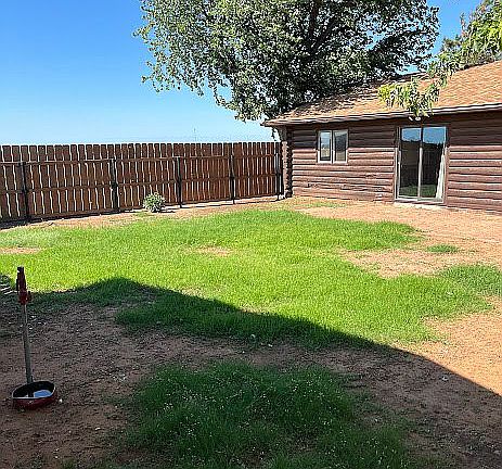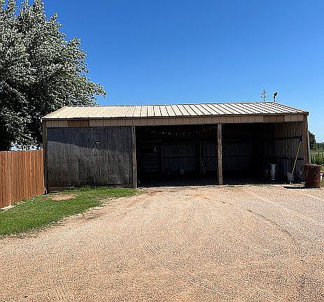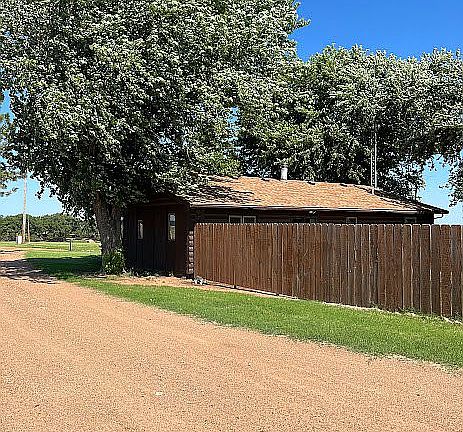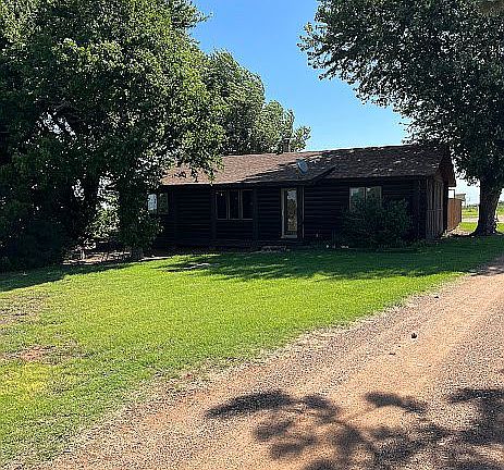 This beautiful country log cabin home is located one mile east of town. The home is placed on 10 acres with many amenities. The amenities include a detached garage, a large roping arena with a bucking shoot, and a 36’x48’ Morton building barn with two indoor stalls and six runs. The barn also has a closed off tack room. The home boasts a rustic space. The master bedroom includes a walk in closet and en suite bathroom with double sinks and a single stall shower. A jack and jill bathroom connects the other two bedrooms. The kitchen has custom wood cabinets and oak hardwood flooring. There are casement windows throughout the home with a sliding glass door that enters the dining room. The backyard is fenced in with a paver patio and a door that leads to the garage. This home is located in Kiowa township.