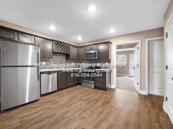 Timber Trails is a stunning community offers spacious floor plans with thoughtfully designed interiors, including gourmet kitchens featuring granite countertops, a pantry, stainless steel appliances, and a built-in wine rack. The beauty continues with LTV flooring, in-kitchen laundry access, and a private patio for outdoor relaxation. Plus, a 1-car garage ensures convenience during chilly winter months. Enjoy family-friendly amenities, including a neighborhood pool, playground, basketball court, and scenic treed walking trails. This home is available for move-in and self-guided tours starting July 28, unless pre-rented. Perfectly located just north of Dean Ave and West Lucy Webb Rd, this community provides easy access to I-49 and 291 Highway, making commutes to Downtown Kansas City, Olathe, and Harrisonville a breeze. Plus, you're just minutes away from a great selection of shopping, dining, and entertainment options in Raymore. Nearby attractions include Timber Trails Park, Blue Ridge Park, Arrowhead Stadium, Kauffman Stadium, and Royal Meadows Golf Course! Don't miss out on your chance to call Timber Trails home! You may find applications, community details, and additional resources plus sign up for tour availability notifications by visiting MGC Leasing & Property Management's homepage. * No pets in this unit. * Some finishes differ by unit. * MGC Leasing does not advertise on social media. * Resident Benefits Package: More details upon application Flexible Lease Options: Choose from 12, 18, or 24-month leases to suit your needs.