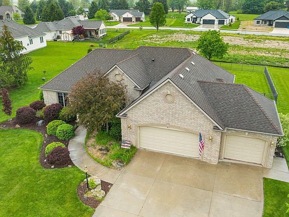 Check out this beautiful ranch home on a full finished basement in Hunters Glen. The eat-in kitchen features Corian counter tops, ceramic tile flooring, glass backsplash, under counter lighting, and a cathedral ceiling. There is also a formal dining room with a 12 ft. ceiling. There is amazing woodwork and can lighting throughout as well as tray ceilings in several of the rooms and two gas fireplaces. The home has a split bedroom floor plan and the master features dual sinks, tiled floor, walk-in closet, jetted tub, and a cathedral ceiling. The lower level is great for entertaining with it's surround sound, built-in entertainment center, full wet bar w/dishwasher, and half bath. The pool table and accessories will also stay with the home. There is also a room with built-in bookshelves that would make a great den or study. There are two other finished rooms that could be used as a 4th and 5th bedroom or whatever you so choose. Other features included a fenced-in back yard, in-ground sprinkler system, alarm system, 2X6 exterior walls for extra energy efficiency, and a water-powered backup sump. The refrigerator and dishwasher are brand new. The riding lawn mower and dining room furnishings are negotiable.