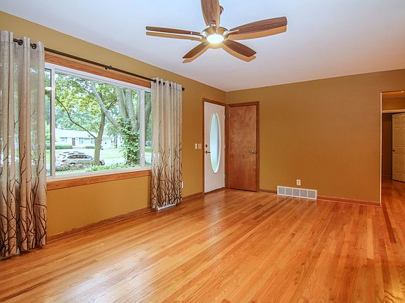 What a nice surprise - a good one! So fresh - refinished hardwood floors thru entire main floor, fresh paint, clean/dry basement (just needs carpet!), wood burning fireplace, updated bathroom and kitchen with newer appliances and gas range. Very large yard (mostly fenced by neighbors' fences) and great deck, low-maintenance exterior. Newer washer/dryer included. Nice, tidy street. Seller says neighbors are SO nice, many long-time owners!