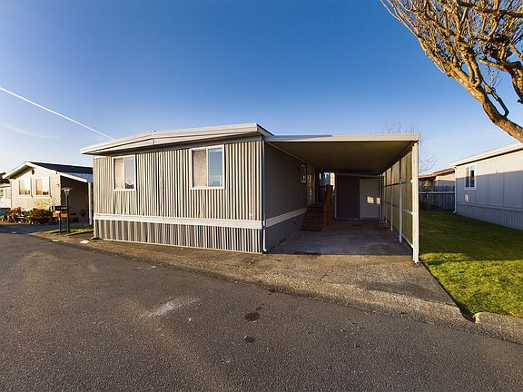 This home in the Lazy J Ranch boasts the best view in the park, overlooking the dog park and lake. No homes across the street. 1152 sq ft, Double Wide, remodeled, new paint inside and out, new windows, sheet rock (no paneling), new carpet, new standing seam roof, new cedar ceilings throughout, very large bathroom with oversize shower and tub, new instant hot water heater, new mini-split heating system, new appliances including gas stove with double oven, refrig, microwave, dishwasher, and garbage disposal. Large primary bedroom with large closet that could easily be a 2nd bedroom. Over 55 senior park. Secret garden area on the west side. Lots of light from southern windows in living room. Yard maintenance furnished with the low lot rent. Carport has new shed for storage or tool shop.