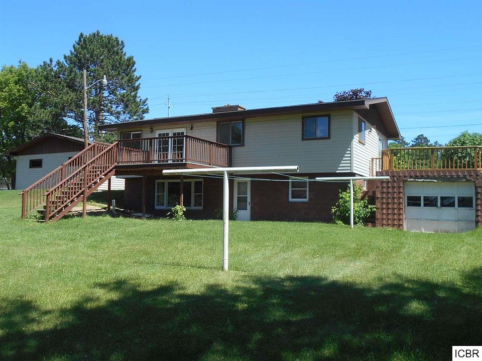 Comfortable in town rambler with full walkout basement and multiple decking. Includes 2 stall garage as well as 1 stall that enters from the back yard. New roof in 2009, new well in 2018. Full bath upstairs with 3/4 in lower level and 2nd kitchen with water and sink. In process of being hooked up to city sewer which is included. Has some fresh paint but needs some updating yet.