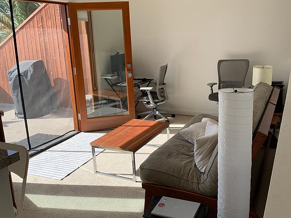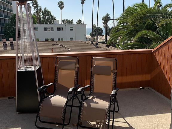 Soaring ceilings and a two-story rock fireplace are the centerpiece of this 1700 square foot townhome, just one block from the beach in Santa Monica. The unit has just been completely remodeled with new cabinets and granite counter tops throughout, porcelain floors and new top of the line appliances in the kitchen. The 3rd floor 200 sqft loft features a wet bar and French doors which open to a private 210 sqft patio with ocean view and hook up for a gas line BBQ. On the second floor enjoy a chef's kitchen, large dining area stepping down into the living room with features that two-story rock fireplace perfect for entertaining. The master bedroom has a private patio and the master bath features a two-person walk-in shower with seat and both regular and hand-held shower heads. 2nd bedroom gets plenty of natural light as well and has a newly remodeled bathroom. Side by side parking for two cars, and private entrance into the unit, complete this newly remodeled home that will let you enjoy the very best of Santa Monica living!