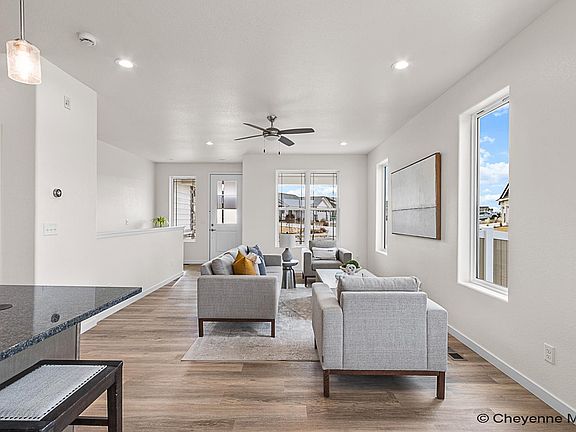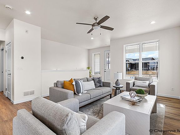 The flowing layout of Gateway’s Alder floor plan has become a perennial favorite! The comfortable great room and kitchen feature a spacious, open layout that’s ideal for both everyday living and entertaining. The sunny primary suite offers oversized windows, a walk-in tile shower and large closet space. Enjoy evening sunsets and prairie views from the covered patio, located just off the dining room. If you desire additional living space, the optional finished basement with nine-foot ceilings offers endless possibilities. This amazing property is located on a corner lot in Sweetgrass, a charming neighborhood perfectly situated within a few minutes drive to downtown Cheyenne.