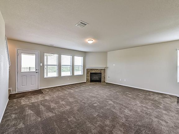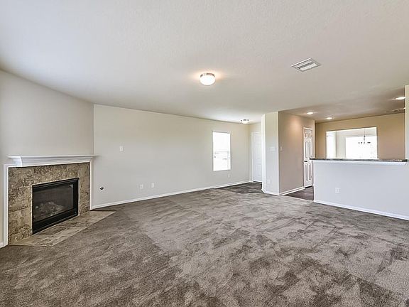 Upgraded home site with wrought iron fence in back and an open view. Great family home with master down and 4 bedrooms up. Kitchen includes 42 inch bordeaux cabinets, tile back splash and upgraded black appliances, including the range, microwave and dishwasher. Also 36 inch direct vent fireplace with tile hearth and wood mantle. More popular features!