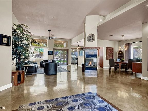 This one-of-a-kind property boasts an oversize lot and is located in a lovely Green Valley gated community. The 3-bedroom/2.5 bath, single-story home with attached 3-car garage has been fully redone with premium upgrades throughout. Featuring stunning stained concrete floors, a large open chef’s kitchen with Thermador Professional appliances, modern cabinetry, and granite countertops. A generous living room area and formal dining room make it perfect for entertaining. The spacious Master Suite includes a gorgeous modern travertine bathroom, air jet spa, private toilet room, fireplace, and custom closets. A separate garage/studio building (interior 670 ft2) is also included, and arranged as an additional 2-car garage and workshop area, with full-size automotive lift (removable). The ultra-private backyard includes a spectacular outdoor kitchen with Lynx grill and gas fired pizza oven, along with custom desert landscaping, LED lighting, and covered lounge area. APPRAISAL IN AT $795,000