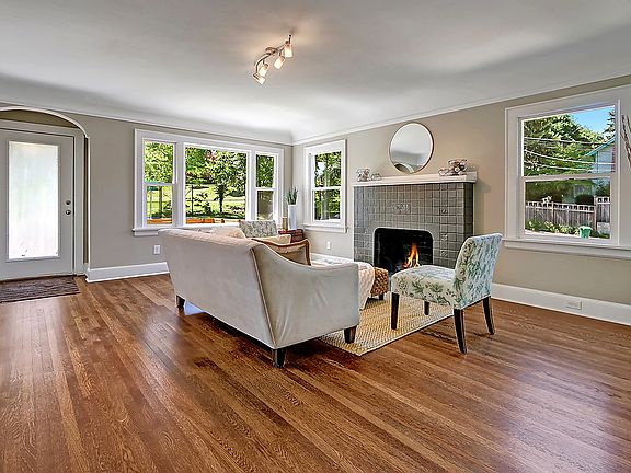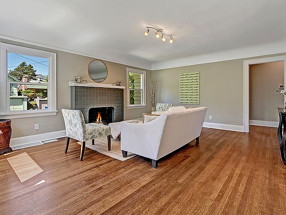Tastefully updated historical home. Old world charm w coved ceiling, hardwoods throughout main, wood burning fireplace mixed w modern day amenities & new finishes throughout. This home will not disappoint! Kitchen has grey shaker cabinets, charming penny tile backsplash and ss appliances including an induction oven. Bedroom and beautiful updated bathroom on main w Jack and Jill bedrooms up & fully finished basement. Corner lot & attached garage. Convenient location to schools, stores & freeway!