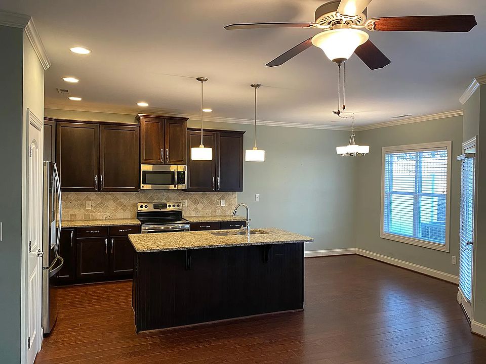 Beautiful, spacious townhome in Southwest Raleigh ready to rent. 3 Bedroom 2.5 Bath. Large main bedroom and bath with walk-in closet. 2 spacious secondary bedrooms. Remote ceiling fans in all bedrooms. 1 car garage with 2 space driveway parking. Granite countertops. All appliances (with washer and dryer) included. Back Patio.