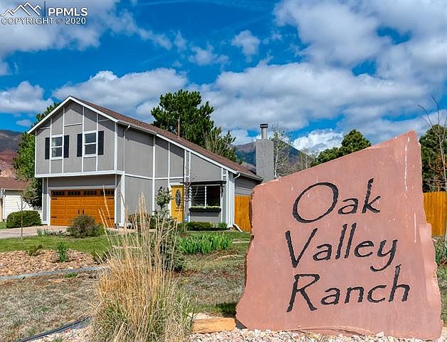Beautiful updated home on corner lot in desirable Oak Valley Ranch, just minutes from Ute Valley Park, Pinon Valley Park and Mountain Shadows Open Space. Views of rock formations and mountains from the Zenlike private back yard, with dozens of aspens, perennials, a low maintenance water feature and a dog run for your furry family members. New exterior paint (2020), new roof (2020), updated kitchen with SS appliances and granite countertops, with wood laminate throughout main level, and tile and ceramic in all baths. Custom Murphy Bed in spare bedroom for use when out of town guests visit, and room can be easily converted back to an office when they leave. Great little home with lots of character and charm!