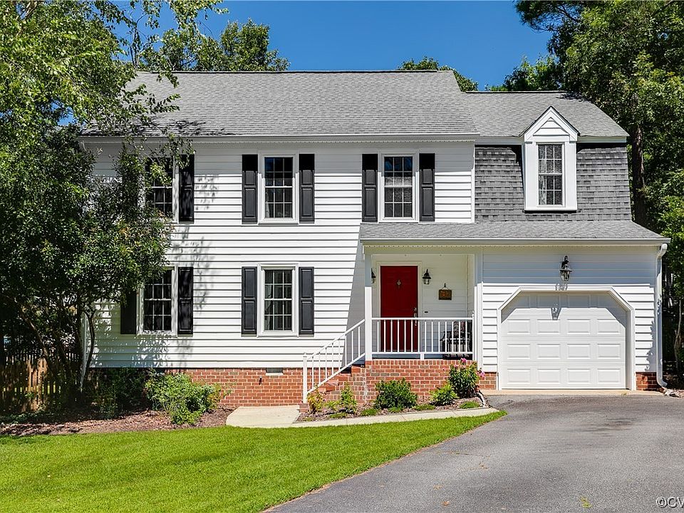 Welcome Home, located on a quiet cul-de-sac, from the front porch you can watch the children play in the flat, large front yard and long driveway. Enter the home to the beautiful hardwood floors throughout downstairs, to the left is the spacious private office with glass French door, half bath down the hall, enter the light filled kitchen with granite counter tops, deep sink, stainless steel appliances and recessed lighting. Off the kitchen is the lovely dining room w/one of the many updated light fixtures, ready for the holiday gatherings! The spacious family room w/gas fireplace w/wall mount for TV with no visible cords-smart! Imagine having friends over on this charming deck and large fully fenced in backyard, already has party lights in place! Upstairs you will find an ample sized primary bedroom with walk-in closet and dressing area and en-suite full bath. Down the hall is a stunner full bath - fully renovated tub, with tile and new marble top vanity and light fixture, accessible by one of the 3 other bedrooms, 2nd floor laundry w/storage. This home has it all, low-maintenance vinyl siding - just power-washed! Newer Windows 5 yrs, HVAC blower replaced, system checked 2023.