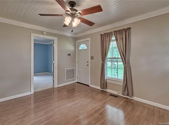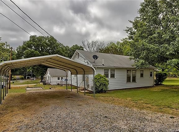 Adorable bungalow with old world charm including rocking chair front porch and original ceilings, plus many updates including new HVAC (2020), remodeled kitchen and bathroom, new carpet in bedrooms, newer windows. Walls and trim were removed and rebuilt when remodeled, and maintain an original look. Living Room and Dining Room boast hardwood floors, and kitchen floor enjoys an upgraded tile-look vinyl. Home features both a 2-car carport and an over-sized detached 2-car garage with workshop and 1/2 bath ("as is"). Detached garage has new architectural shingle roof, and doors have been freshly painted. Second driveway is shared and provides access to detached garage and shared well. This lovely home and the expansive garage/workshop are move-in ready ... welcome home!