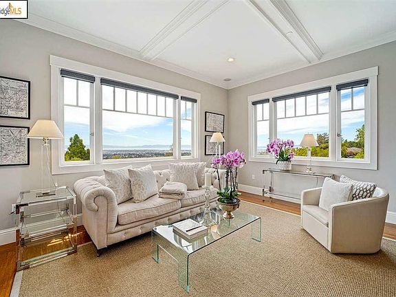 New listing. Custom built home perched on a near acre lot with dramatic Bay views. The main level features an open floor plan with stone fireplace & box-beam ceiling. The dining area opens to a patio with built-in barbeque & pizza oven. A spacious gourmet kitchen with breakfast bar, high end appliances & pantry provide the chef the tools to create & entertain. A main level bedroom & full bath are perfect for guests or a home office. The upper level, features a stunning bedroom suite showcasing Bay views. The en-suite bath with soaking tub offers the ideal way to relax. Two spacious bedrooms, a hall bath & laundry complete this thoughtful upstairs configuration. On the lower level, a large rumpus room & a four-car garage present options for a media room or gym. The property is meticulously landscaped with gardens, level lawn area, view patio, vegetable beds & chicken coop. From of this urban oasis, you are minutes to parks, shops & transportation.