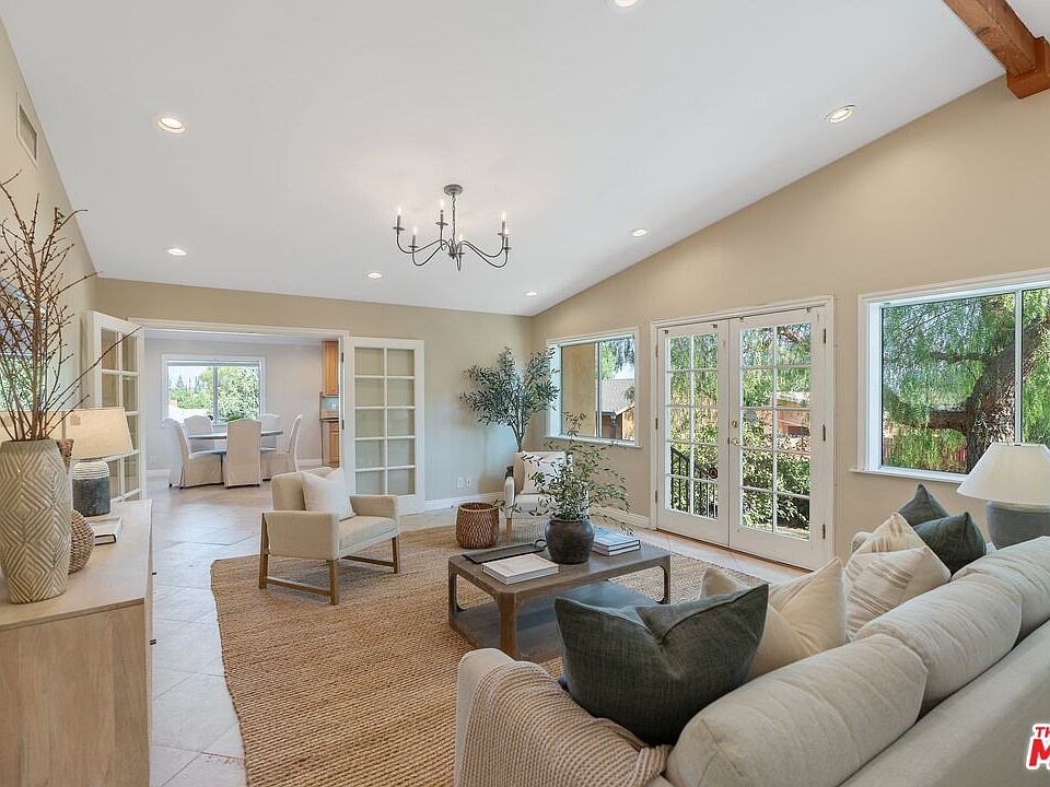 Don't miss the opportunity to own this incredible home and property on a quiet tree lined desirable Chatsworth neighborhood. Sitting on a massive 24,000 sq ft lot (over 1/2 acre!) with 160 ft of street frontage and multiple driving gates to access the property. With many value add possibilities including expanding on the current spacious home, grounds, build ADU, family compound or more development. Main house has a spacious open floor plan with 4 bed and 3 baths and great room with beamed vaulted ceiling and walls of windows and French doors overlooking the expansive back yard. Primary suite is a must see with massive bath and multiple closets. Boasting space for everyone inside and out, this home is a must see! Step outside and explore this rarely offered property with large yard and fence currently dividing the property. On the other side find a newly built barn perfect for animals, horses or other building opportunities. The lot areas are perfectly even providing ample room for growth and distribution of the lot for the future. Sensational rare opportunity knocks for this spectacular over half acre lot so schedule a showing today! Close to schools, shopping, restaurants and freeways.