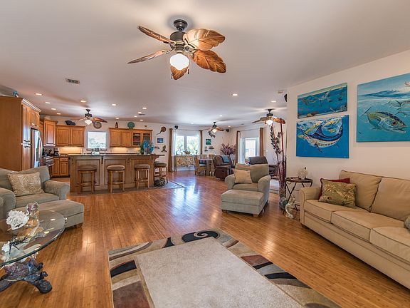 Custom built 3/2 plus large office, built to 175mph wind loads with impact windows and metal roof. Large open split floor plan with custom kitchen, large patio and even a boat basin on this flow thru canal loaded with marine life. Office can be easily converted into a 4th bedroom and the laundry room which is next to it to a bath, making a 4th bedroom and 2nd large on suite. Big boats not a problem, currently 42-foot cruiser at dock. Plenty of room for a pool. Lots of space between neighbors. Double garage plus, 500 lbs. ice machine, boat lift and davit. Tropical landscaping and plenty of room for a pool. This is truly comfortable Keys living and the home is turnkey waiting for you. see virtual tour you will not be disappointed.