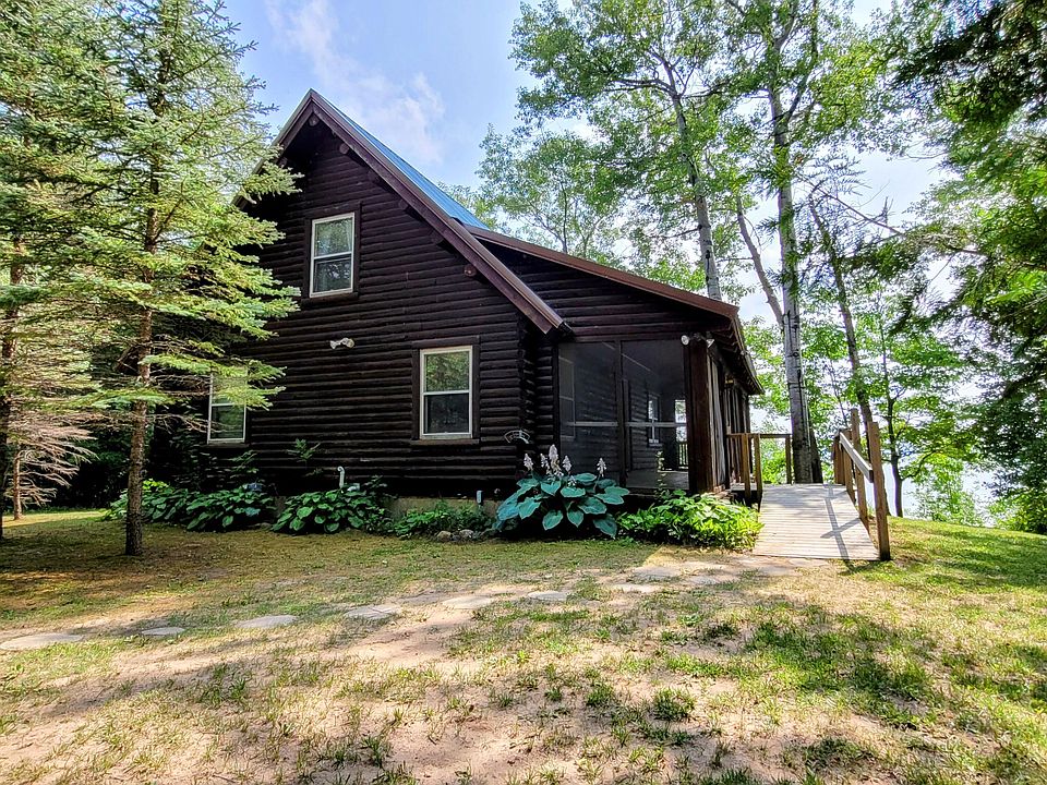 Charming log cabin sitting on a double lot with wooded privacy with 151' of frontage on desirable Black Lake. This home has 2 bedrooms with a loft and a full bath. Full walk-out basement with laundry. There is an upper and lower deck with views to the lake. A screened in porch, a 32 x 24 pole barn, comes with a dock, boat hoist, swing and picnic table.