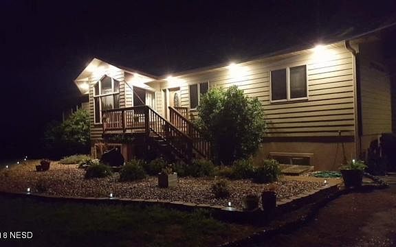 Gorgeous acreage very close to town! 5 acre lot with many trees, home has 4 bedrooms, 3 1/2 baths, finished garage, huge family room in lower level, large deck off dining area, shop 42' x 104' with 60' cemented out. Geothermal heating and cooling system, double sided fireplace in open living room, dining kitchen area. This is a beauty. More acres may be available.