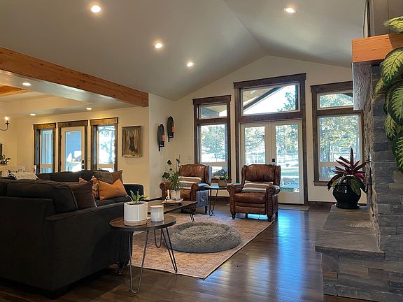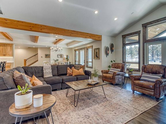 Remarkable 2.45-acre Tumalo gem that adjoins public land! Enjoy riding, hiking or wildlife viewing out your back gate! 3300+ sq. ft. custom home with beautiful open layout plus a 36x44 shop. Fall in love with the wood burning fireplace, timber beam and ship-lap accents that capture a true Northwest vibe with a stroke of farmhouse feel. Quartz countertops, apron front sink, custom built local cabinets and vent hood. Abundant storage in the butler's pantry with 2nd refrigerator. The primary bathroom has an oversized tile shower with dual heads. Enjoy entertaining outside with a natural firepit, hot tub and an exterior TV area under 700 sq. ft. of timber frame porch roof along with over 1100 sq. ft. of paver patios. Huge garden area with fruit trees, raised beds and irrigation. The shop has 14' tall doors to fit any RV or boat and is fully insulated with heat/AC. Space above shop and utilities prepped for future rural ADU. Full RV hookups inside and outside of shop. Fully paved driveway.