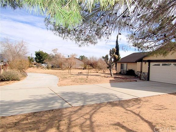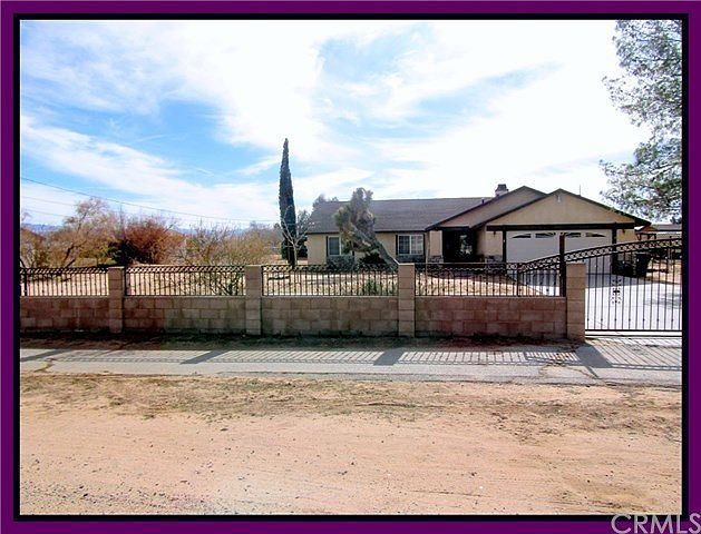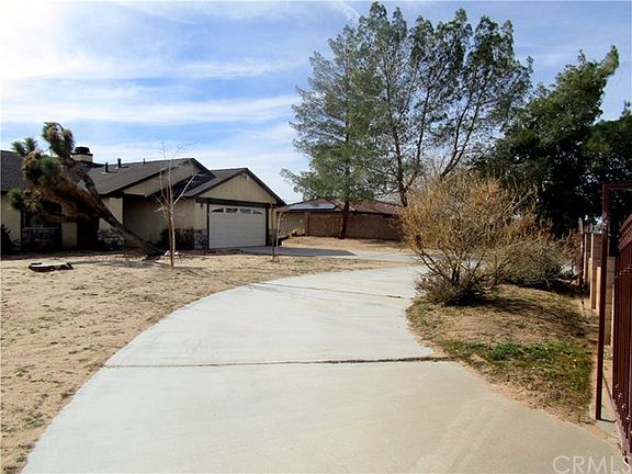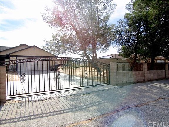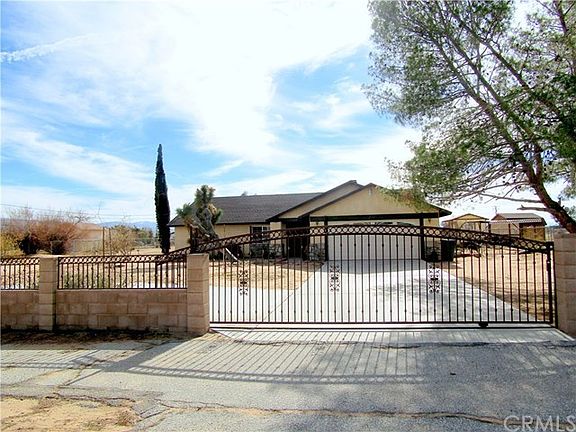 Beautiful moving ready home located in a quiet desirable area of Apple Valley. Featuring 3 bedrooms and 2 baths, a nice living room, a kitchen with french door that goes to the back yard. The master bedroom has double closets, french door that goes in the back yard, and a nice bathroom .Is upgraded with front yard brick wall and double rod iron gates and circular driveway, beautiful travertine floors in most of the house , recently painted inside, 1 year old new roof, new water heater, A/C changed 4 years ago,new garbage disposal. The back yard has a nice covered patio, 3 storage sheds for extra storage all renovated and also have electricity. One of them has also A/C unit. Wide carport for extra parking and 10 pistachio three.