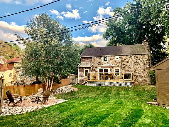 An outstanding combination of old world craftsmanship and updated charm. The stone exterior of this home is full of character and warmth. Coupled with a well-maintained and professionally landscaped, fenced-in yard and cedar shed, this is a beautiful home inside and out. It is plain to see that this home has been maintained and cared for over many years. Most recently, the 2nd floor bathroom has been meticulously expanded with double sinks, soaking tub, and beautiful tile throughout. Freshly painted in cozy neutral colors that will enhance any decor. In addition, brand new hardwood floors throughout the second level. Newer stainless steel appliances as well as wood Levelor blinds throughout. The just-finished wood deck overlooking the big backyard will be a gathering place three out of four seasons...not to mention the patio with fire pit perfect for fall! Basement is unfinished, but DRY, super clean and currently used as a workshop and workout space. New perimeter drain and sump pump installed in 2017. Other updates include: Oil heater replaced in 2012, 50 gallon water heater in 2014, new oil tank installed in 2014 and a top of the line, three zone central air conditioning system installed in July 2015 provides cool air in summer and warmth in winter. In addition, for the coldest days, radiator heat still works perfectly and provides even, cozy heat, superior to any forced air system. New washer and dryer in September 2018. Brand new, energy efficient sliding door installed in 2018 provides great natural light to kitchen. New garage door opener in 2019.