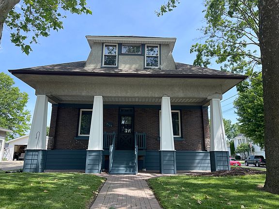 CHARACTER WITH AN ARTSY FLAIR! If you're looking for a unique home with great woodwork, coffered ceiling, pocket door, some transom windows and beautiful leaded glass, this may be an excellent choice. New kitchen with SS appliances, cook top, quartz countertop. A partial exposed brick offers charm and warmth for this older home in a great Peru centralized location. The separate dining room has 2 classic wood pillars with built in bookcases that may be just your style. Hardwood floors have been re-done. New back door, new concrete patio, 4 bedroom's, 2 baths. Main level laundry has built in cabinetry plus an addl new cabinet. Baths are new with subway tile, luxury planked flooring. Open staircase leading to upper level with 3 bedrooms, a bonus room and 2nd bath. Spacious walk-in closets and plenty of storage. Full basement has circuit breakers, brand new on demand water heater and offers another bedroom with double closet and a very large window. (No egress) Great curb appeal.