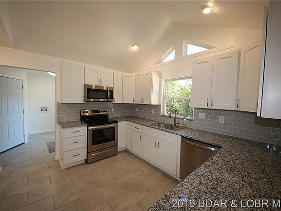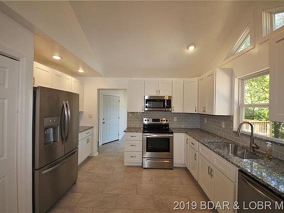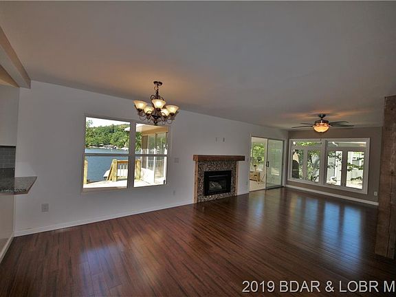 Completely remodeled in 2019 with new kitchen, appliances, flooring, paint, bathrooms, deck railing. Great cove location in Anthony Creek Cove at the 1.5MM of the Big Niangua. Main level living with 2 bedrooms and a full bath plus a 3 seasons room overlooking the water. Huge master suite on the upper level for privacy that has a beautiful new bathroom, large walk-in closet and separate outside entrance on the back of the home. Two car garage that has a half bath for swimmers and boaters to use. Very private setting with only one home that shares a private drive from Bear Paw. The lot is almost one acre with 157' of frontage on Bear Paw. Check it out; you'll love the remodeling that's been done. Owner still has a few finishing touches but it will be ready to move into at closing.