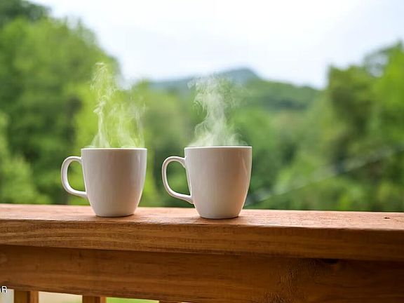 Designed with a modern boho flair, the cabin features cathedral ceilings, a spacious king-sized bed, and a sleeper sofa, comfortably accommodating up to 4 guests. The open-concept living area is filled with natural light, creating a cozy yet sophisticated atmosphere for couples or small families. Outside, the wrap-around covered deck offers an inviting space for drinking morning coffee while enjoying the view. The private hot tub provides the perfect spot to unwind after a long day in town. Guests can also enjoy the fire pit area, ideal for making memories under the stars.