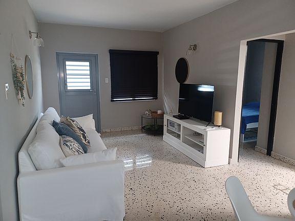 Just bring your bag! Ground level fully furnished apartment 2/1 with A/C in living (with TV) & bedrooms. Parking for 1 vehicle behind gate w/ beeper. One block from the park (finishing renovation), 500m from the beach, 500m from Walgreens, 1500m from groceries (SuperMax), close to all kinds of restaurants but away from the noise. No smoking property. No pets. Equipped kitchen including silverware, bedding & towels and Washing/Drying machine. Price discounted in order to bring prospects with no pets. Additional $50 discount if you don't need the parking space. Actual location is one block from the park in case the map shows wrong location like last time I looked. Fully furnished including dishes. Utilities not included. One year lease.