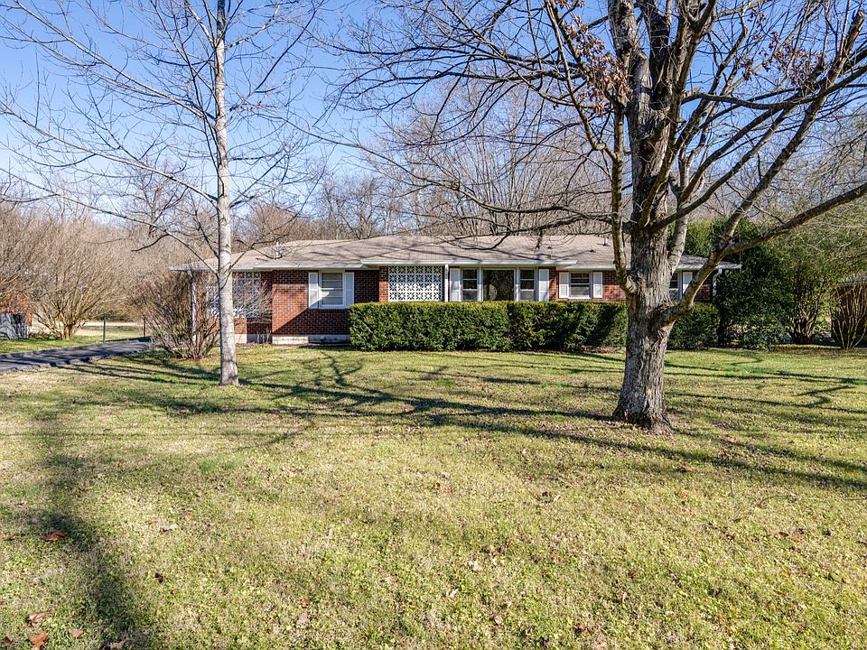 Beautiful midcentury ranch home with all-brick exterior. Meticulously maintained, featuring wood burning fireplace; charming, all-original bath tile; 2-car garage with extra storage space; motorized gate; fully-fenced back yard; and spacious, detached office studio. Peaceful setting backing up to 30 acres, with easy access to Shelby Park Greenway and near Riverside Village. Updates include refinished hardwoods, new carpet, and fresh paint throughout.