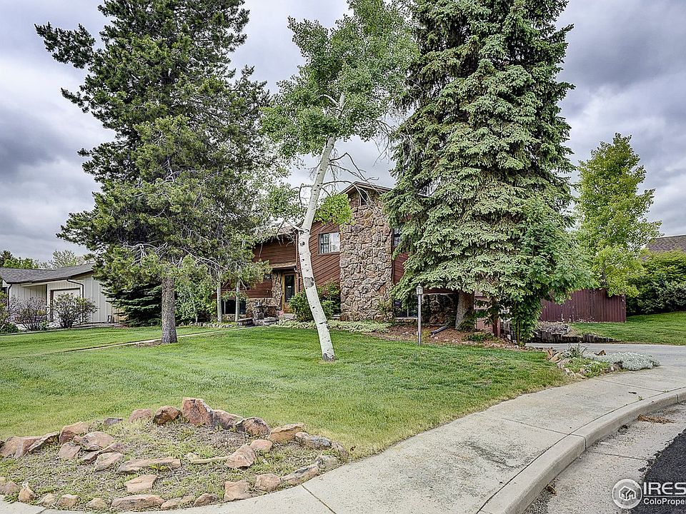 Roomy Bi-level on a quiet cul-de-sac in West Loveland. This 4 bed 3 bath home sits on over a 1/4 acre and has no HOA. Large back yard is perfect for quiet time or entertaining. New roof and gutters installed May 2020. Hardwood floors. Eat in kitchen & formal dining area. Large deck off the kitchen. Enjoy adult beverages or roast marshmallows with the kids around the fire pit built in the 100yr old cottonwood tree trunk. Close to shopping, golf, restaurants, schools & minutes from the foothills.