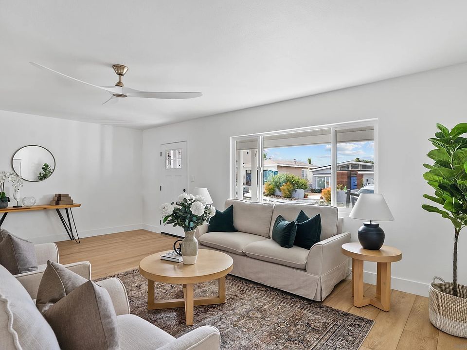 Discover the epitome of modern living in this meticulously upgraded Bay Park residence in San Diego. Boasting an array of recent enhancements, this detached home offers a harmonious blend of functionality and style. The allure begins with a brand-new pool liner and coping (2021), setting the stage for a pristine aquatic retreat. Inside, an upgraded electrical panel (2022) ensures seamless power distribution, while a thoughtfully constructed front yard wall (2022) enhances both privacy and curb appeal. The extended driveway and drainage improvements (2022) showcase a commitment to convenience and practicality. Recent stucco updates and repairs (2023) contribute to the home's timeless exterior, complemented by a new pool pump (2023) for both efficiency and clarity. Inside, a $60,000 investment in 2023 has transformed the entire interior, from new windows to a modern kitchen, upgraded electrical systems, a new stove and vent, luxurious flooring, renovated bathrooms, and stylish interior doors. The outdoor space is equally enticing, featuring wood slats, solar lighting, a stuccoed middle wall, and an upgraded back wood fence. With meticulous attention to detail evident in every upgrade, this Bay Park gem promises contemporary comfort and an unparalleled living experience. Schedule your private tour today and envision the lifestyle that awaits in this turnkey haven.