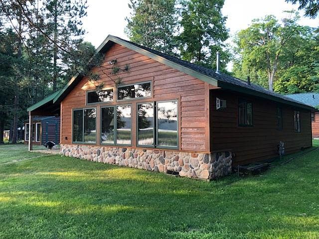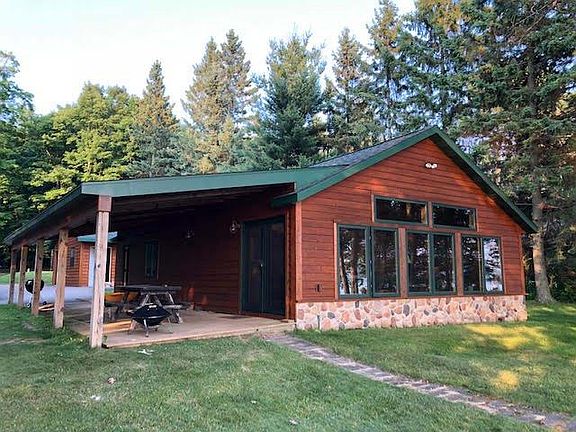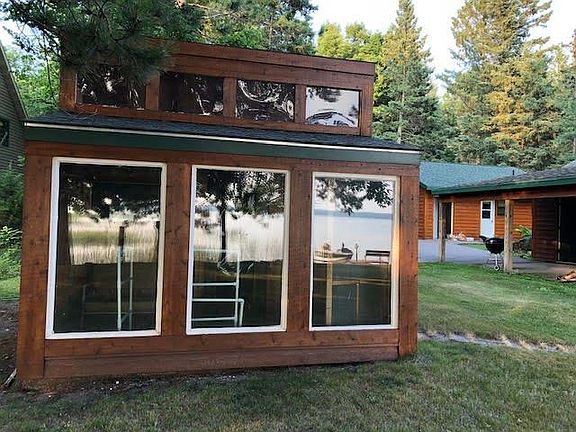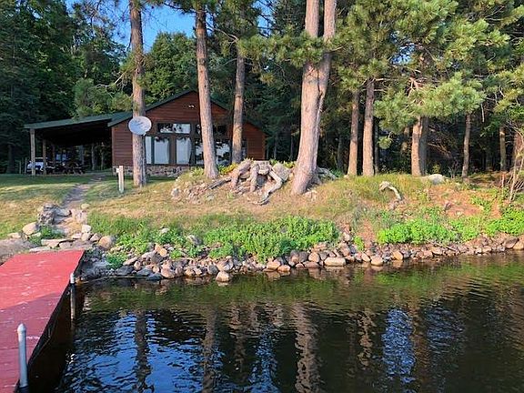 This Pelican Lake getaway enjoys western exposure, cedar siding, 1 + detached garage, sauna & is located on the end of a dead-end road for privacy. The great room has pine paneling, wall of windows overlooking the lake, freestanding gas fireplace, beautiful maple kitchen cabinets, & French door to the covered deck. There are two nice sized bedrooms and a full bath. There is a detached garage with a full bath & storage area. The wood burning sauna lined with white cedar, blacktop driveway, mound system, drilled well complete this property.