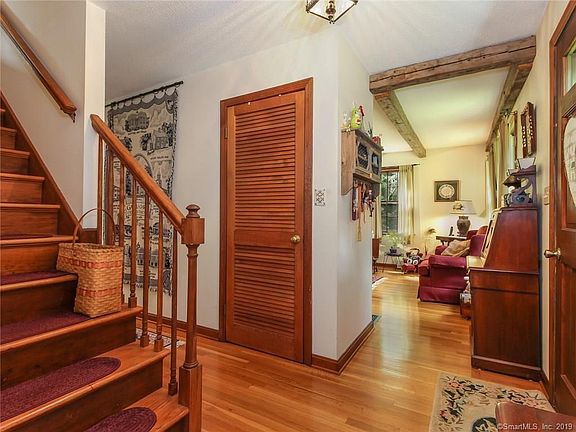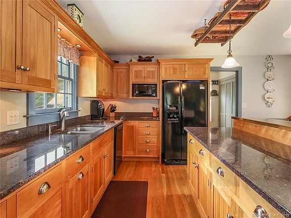 Take a look at this wonderfully designed and maintained reproduction style cape home. Loved by the same owner who built and designed, you will be impressed with the custom features throughout. They say the kitchen is the heart of the home and this kitchen truly is!! With an entry from a mud room to the antique style gas/wood stove, craftman cabinets, breakfast bar, granite counters and large walk in pantry with double ovens, this special space is the best. Opening to the dining area and formal living room with exposed beams and stone hearth fireplace, you will never want to leave. In addition to these great features there is a first floor bedroom, master suite with sitting area, additional 1500 square footage in lower level with cedar closet, exercise room and workshop. Gleaming hardwood floors throughout. The oversized back yard deck overlooks a lightly wooded lot offering a 3 car detached garage/barn area.