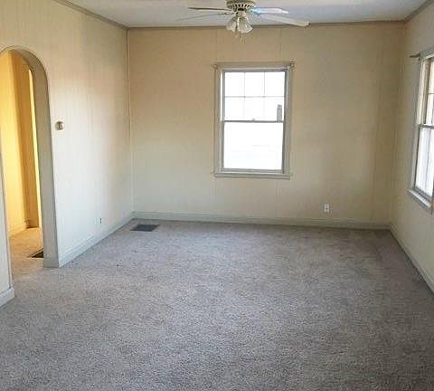Move in ready! New carpet, paint, fixtures, kitchen cabinets, floor and main floor laundry room. Master bedroom on first floor, second large bedroom upstairs. Basement has finished area plus full bath. Lot is 85x480.