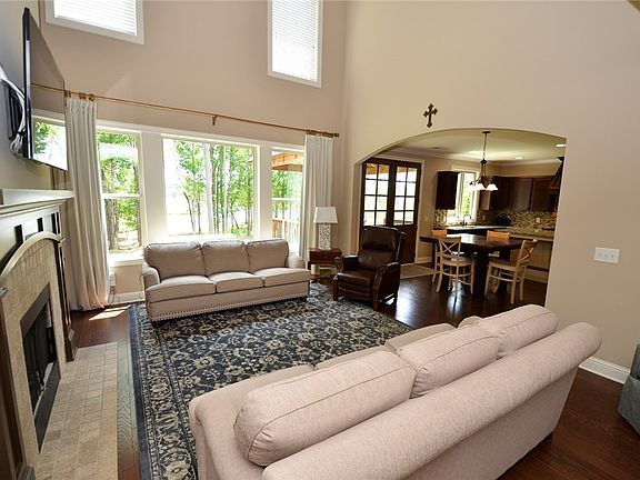 Spacious home w/ upgrades galore on the lake! Main level master w/ 4 bedrooms & huge bonus upstairs. Elegant 2-story foyer is flanked by formal dining room, which flows into incredible 2-story great room. Great room features a wood burning fireplace & room-length wall of windows to take in the stunning lake views! The gourmet kitchen, located just off the great room, boasts a bright & open breakfast space, large center island, walk-in pantry, custom cabinetry & range hood, & SS appliances, including a commercial grade 6 burner gas range/double oven. Main level master, also w/ gorgeous lake views, features tray ceiling & luxurious en suite bath w/ extended double sink vanity, tiled step-in shower, jetted tub, private WC, & fantastic walk-in closet. Laundry (w/ tons of storage), drop zone, & powder room round out 1st floor. Upstairs are 4 more bedrooms (each w/ walk-in closet), a huge bonus space, & 2 full baths. Covered rear deck, perfect for relaxing & enjoying the view! 3 car garage.