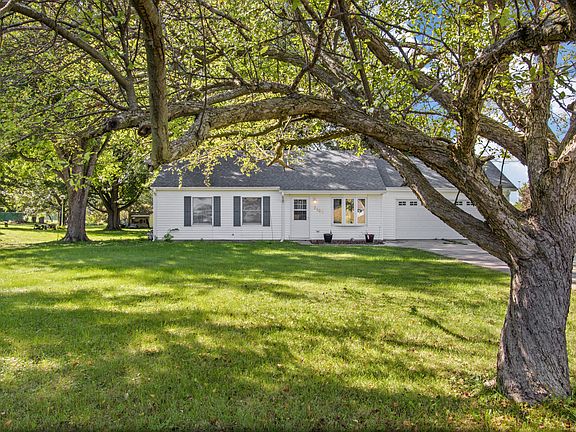 Inviting move-in ready 3 bedroom, 1 bathroom ranch situated on a 1 acre lot with mature trees. Semi-open floor plan allows you to seamlessly move through the living room, dining room, and eat-in kitchen. Updated electrical box and meter, flooring, ceiling fans, and paint. Bathroom remodeled in 2017. In addition to the two car attached garage, this home features a a large detached garage (36 X 24), with a (36 X 16) lean-to near the back edge of the property for extra storage or rental income. The detached garage and lean-to are currently rented for $125 a month. Tenant is open to staying or going. Listing broker has an ownership interest in this property.