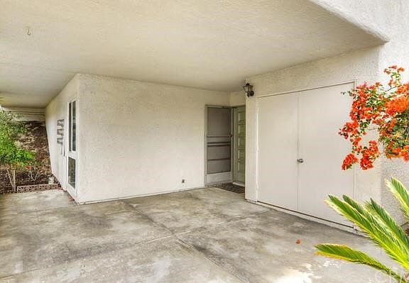 Call listing agent John Sturdevant (949) 584-5619. Best location, new condition, lowest price Monterey with enormous patio which is really great with huge storage closet. This charming end unit feels like a villa & has ground level entrance, no stairs, inside private laundry, you can park in front & no stairs to the carport #2057-1. Nearly new finishes are fresh & clean with designer paint scheme, neutral carpet, Milgard double pane vinyl frame windows, heat pump/air conditioner, new counters & flooring in kitchen & bath. Wonderful floorplan with 2 generous size bedrooms (separated at each side of the house) and 1 bathroom with large vanity. Plenty of closet space and a HUGE front courtyard patio that is mostly covered with outside storage closets too. Offers a quiet location and has a really great feel to it. Enjoy all the amenities of Laguna Woods premier active adult community with every club, craft or activity you can imagine from free bus system, pools, gyms and equestrian center to wood shop, ceramic shop, 27 holes of golf and walking paths. Just minutes to downtown Laguna Beach and Irvine Spectrum. Association fee includes water, trash, cable TV, building maintenance & insurance as well as many interior components.