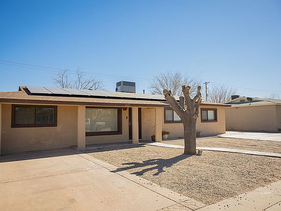 Enjoy in town living in this spacious 3 bed 2 bath with endless opportunities! House has multiple bonus rooms, including an Arizona room! Property is located just minutes from multiple elementary schools, a junior high school and high school. Property has two sheds, is partially fenced with enclosed back yard that has a lawn. This property is ready to host all your upcoming events with a children's playground in back yard with covered back porch. House has solar panels installed with a roof a/c unit and exterior paint all replaced within the last seven years. Covered and uncovered parking is available. This property is a must see house waiting to turn into a home!