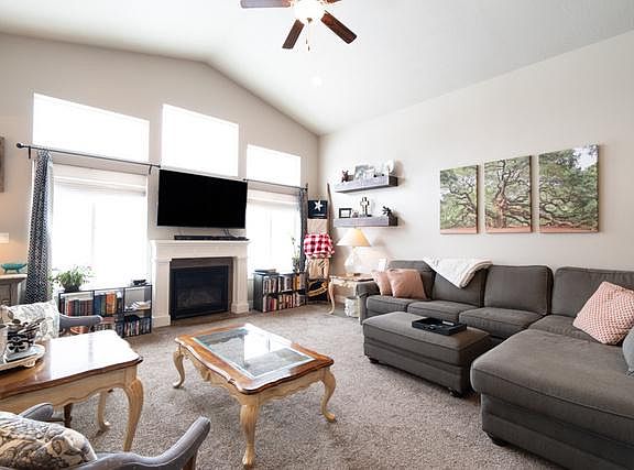 YOU HAVE ARRIVED! Beautiful, fully finished, executive home in convenient location. Vaulted ceilings and picture windows capture gorgeous mountain views. The open concept layout has large great room with gas fireplace and an amazing kitchen will WOW you with its tasteful granite, SS appliances, 4 burner gas range with griddle, long island bar and large walk in pantry. Owner's suite is supersized with grand bath and WIC. Two additional main level bedrooms and one additional full bathroom. High quality basement finishes include huge family room, 2 additional bedrooms and full bath.Outdoor living is a key feature of this property, boasting a massive East side backyard for future pool or sports court; welcoming covered patio; fully finished landscaping, surrounded in vinyl fence with gates; and SWEET RV parking space. Guys...wait until you see this amazing 4 car garage with sink, insulated doors and garage door to yard. Don't wait to build. Call today and make this home YOUR DREAM HOME.