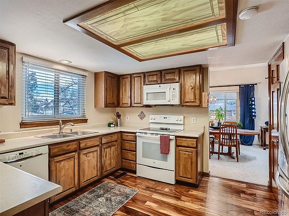 Live comfortably in this cozy 4-bedroom home featuring vaulted ceilings and new skylights in the living and dining open area. Enjoy the newly installed hand-scraped natural acacia wood panel flooring, raised panel wood cabinet doors, and formica countertops in the kitchen along with the new GE glass top electric range and microwave, Bosch dishwasher, large-capacity stainless steel LG refrigerator. Unwind in the spacious master suite with updated 5-piece bath. Snuggle up and relax by the gas fireplace in the family room which opens out to the covered back patio. Nicely landscaped back yard with perennial flowers, grasses and large trees, fully fenced, and a dog door. Newly painted exterior, new state of the art evaporative cooler, new 50 gallon water heater. Laundry room features sink and the new 2022 Electrolux washer & dryer are included. Don't miss this great deal!