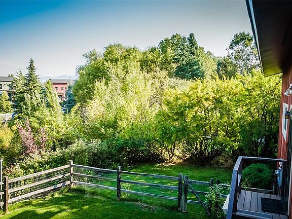 Beautiful 3384 s.f. home in rare creekside setting close to MSU, stadium, shopping, restaurants. The native- Montana slate rock entry, hardwood floors, rock fireplaces and location make it a very special place. The park-like fenced back yard with black walnut, cherry and plum trees plus raspberry patch, is accessed by a large, shady covered deck and lower covered patio. A lush riparian area is south of the creek. Enjoy great views from the master bedroom, deck and dining room. Driveway and front entrance have southern exposure. Two massive rock fireplaces accent upper and lower living areas. An extra room in lower level would be great for a fun pool/ping pong table or extra storage. The den/office in lower level with rock wall could be a 5th bedroom with addition of a door. Don't miss this very special home on a large, 10,000 s.f. lot. Location!!