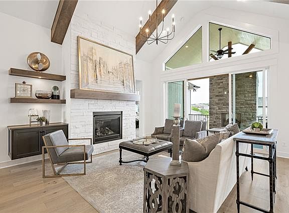 The amazing Bayberry by JFE Construction is a gorgeous reverse 1 1/2 home on a walkout lot. Enjoy entertaining when you back up to beautiful and private greenspace. The great room has enormous windows showcasing the beauty of the greenspace. Spacious, open, beautiful details including vaulted ceiling w/beams, gorgeous windows & doors, freestanding tub in master, designer tile. Located in Hook Farms, Hunt Midwest’s newest and fasted-growing Lee’s Summit community. 65+ acres of green space and community pool. Wooded walking trails and community garden coming soon. Lee’s Summit schools including Lee’s Summit West attendance area. Convenient location close to everything. *Taxes, room sizes & sq ft estimated* PICTURES ARE OF A PREVIOUS MODEL. THIS HOME IS CURRENTLY AT PAINT STAGE. ESTIMATED COMPLETION DATE IS EARLY OCTOBER.