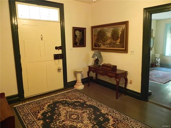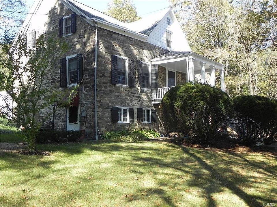 Gorgeous, 3 stories Victorian stone house located on 3.3 acres of lavishing land is just minutes away from downtown charming Kingston with its great restaurants, entertainment, shops, museums and NYC bus service. This very well maintained and light-filled house has a lot of the original woodwork craftsmanship. The large eat-in kitchen on the first level has a 7 feet long wood burning fireplace. The grand entrance and a foyer leading to a large formal dining room and a study/den with cedar wood closets on the right and a spacious living room on the left with window seats and a beautiful stone wood-burning fireplace. The large master bedroom and 3 other spacious bedrooms with a lot of closet space are located on the third level. One of the 3 full baths has oversized cast iron bathtub. Original plank wood floors throughout the second and third level. There is a two-story carriage house with one car garage space. Welcome home to this private sanctuary!