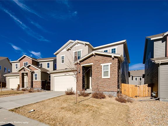 Lovely two-story built by Tri-Point in 2015 that feels like new and is ready for you to move right in! The open concept floor plan boasts high ceilings flooded with natural light and a gourmet kitchen is at its core with stainless appliances, walk-in pantry, ample cabinetry, and a large island. Both the dining and living rooms adjoin featuring a modern gas fireplace & sliding door to the backyard. A powder room and access to the attached 2 car garage complete this level. Upstairs, the master has a 4-piece bath ensuite with a walk-in closet. Two secondary bedrooms are served by a full bath on the hall. A laundry room on this level offers convenience. The full basement is unfinished providing a light and bright storage space. With egress windows already installed, the basement is awaiting your finishing touch! Unbeatable location with the pool, neighborhood elementary school, parks, and trails nearby. Downtown Castle Rock is minutes away and easy highway access makes commuting a breeze.