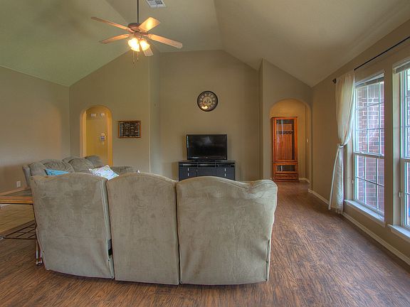 Beautiful full brick one level home w/park, basketball and splash pad located close to Jenks schools, shopping & easy access to highways! Nestled on a quiet cul-d-sac corner lot off a quiet street w/full stained privacy fence this home features fresh paint, sanitized carpets, recently cleaned ducts & serviced HVAC, new roof 2018, new smoke detectors, vaulted ceilings in living & formal dining, master w/nice walk-in closet, open/split floor plan, separate laundry, beautiful covered front porch & pergola.