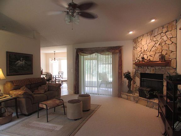 ABSOLUTELY STUNNING ALMOST TWO ACRE PLOT ON CUL DE SAC WAITING FOR ITS NEW OWNER. THREE BEDROOM HOME WITH WHITE BERBER CARPETING CATHEDRAL CEILING IN GREAT ROOM WITH SLIDERS TO SCREENED IN LANAI. PRIVATE SETTING WITH ROOM FOR AN INGROUND POOL. NEW A/C AND HEAT. SCREEN ON TWO CAR GARAGE. THIRD BEDROOM USED AS AN OFFICE. WOOD BURNING, STONE FIREPLACE IN GREAT ROOM NEVER BEEN USED. OVERSIZED MASTER BEDROOM WITH WALK IN CLOSET. WATER PURIFICATION SYSTEM. INCLUDES ALL FURNITURE, JOHN DEERE RIDING MOWER AND SO MUCH MORE. DON'T MISS OUT ON THIS BEAUTIFULLY LANDSCAPED PROPERTY. TERMITE BOND PAID UP FOR TWO YEARS. SHED ON PROPERTY