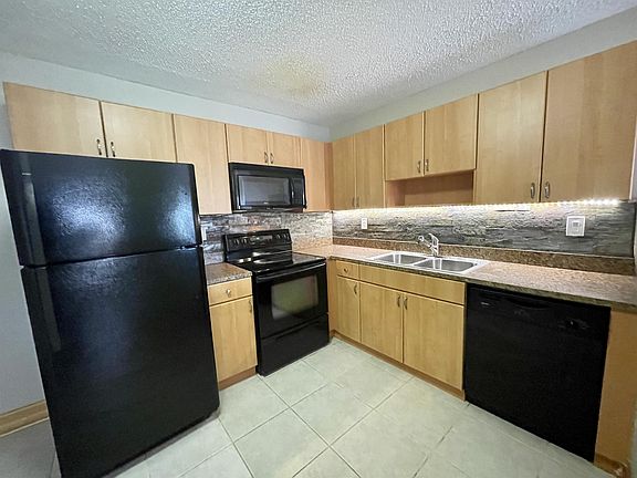 Breakfast barElegant kitchenBlack appliancesFormica counter topsNewer interior paintLots of cabinetsNewer kitchen appliances